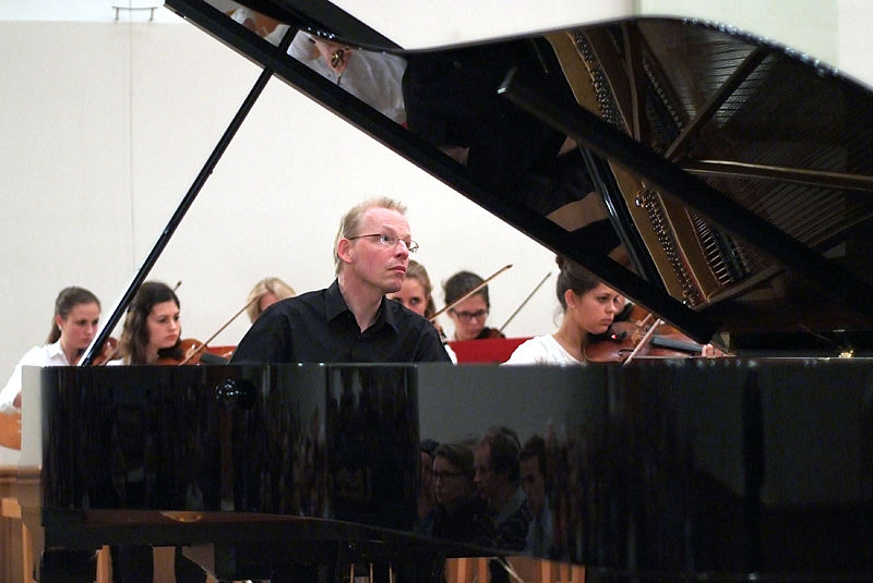 Antonin Dvo?ák ist neben den Kompositionen der deutschen Romantik ein weiterer Schwerpunkt, der bei „il mosaico“ in Bezug auf die Musik des 19. Jahrhunderts gesetzt wird. Mit seinem wahrscheinlich berühmtesten Werk hatte man zugleich das Titelstück des Frühjahrskonzerts gefunden: Die 9. Sinfonie – „Aus der Neuen Welt“. Doch das Konzert spiegelte auch andere musikalische Welten wider, in denen sich das Orchester bewegt. So gehören Werke der Wiener Klassik zum festen Programm. Klar, das hier Mozart von kleineren Kompositionen über Klavierkonzerte und Sinfonien bis hin zu seinem grossartigen Requiem nicht fehlen darf. Am Sonntag liess das Orchester sein vor Dramatik strotzendes „Klavierkonzert Nr. 24 in c-moll“ hören.