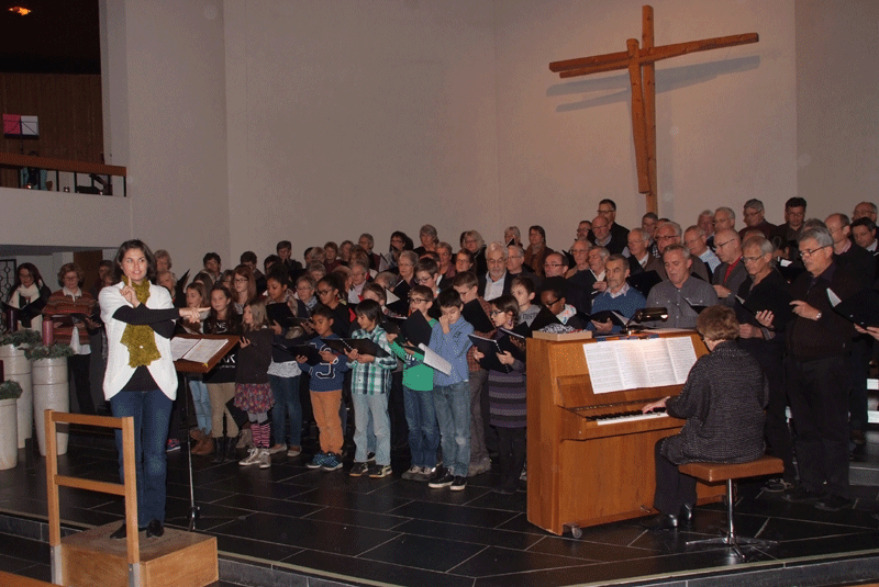 Doch waren nicht nur die Chöre an diesem vorweihnachtlichen Programm beteiligt. Rahel und Simon Scheiwiller leisteten an Oboe und Fagott einen Beitrag, wie auch Heidi Bollhalder und Ramona Ciganovic, welche den Gesang zusätzlich an Orgel und Klavier ergänzten. Mit einem Zwischenspiel, bei dem nicht nur flott daherredende heilige drei Könige auftauchten, sondern auch die Kinder noch einmal ihre klaren Stimmen erklingen liessen und dies von einer kleinen Choreographie begleiteten, gab es zusätzliche Abwechslung.