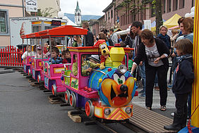 Letztere hatten hier wieder viel zu erleben und zu entdecken. Das breite Angebot des Marktes lockte zum Bummel entlang der Auslagen. Hier lud neben Schmuck, Spielwaren, Lederartikeln, Kleidung und Kleinkunst nicht zuletzt auch das kulinarische Angebot zu einer Weltreise mit dem Gaumen ein. Nicht zuletzt konnten die kleinen Frühlingsfestgäste in Feuerwehrautos oder Helikoptern auf dem Kinderkarussell oder auf einer kleinen Eisenbahn ihre Runden drehen. Aber auch die Jugendvereine der Stadt hatten sich wieder ins Zeug gelegt und ein amüsantes Programm auf die Beine gestellt. Beim klassischen Harassen-Stapeln und Stockbrot-Grillieren war hier wieder für jede Menge Action gesorgt.