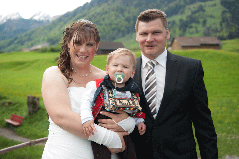 Kurzentschlossen mit Fernsehbegleitung zu heiraten, brachte die beiden aber nicht aus dem Konzept. «Wir haben die Hochzeit so gestaltet, wie wir es uns vorher überlegt hatten und nichts speziell verändert, ausser dass es ein paar Gäste mehr waren», erzählt Esther Schweizer. So ging es zunächst zur Trauung in Nesslau, ins heimische Stein zu einem Apéro und mit einer Postautofahrt über Laad schliesslich zum Abendprogramm ins Restaurant «3 Eidgenossen» in Starkenbach. Da beide Eheleute auch in den heimischen Vereinen vertreten sind, konnte man zudem auf ein traditionelles Rahmenprogramm mit den Ischellnern Churfirsten und dem Singchörli Laad setzen.