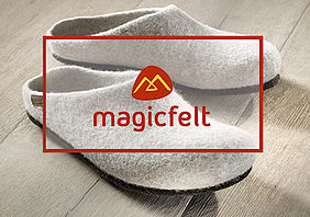 Auf den ersten Blick scheinen die Magicfelt®-Pantoffel recht schlicht - jedoch steckt hier viel Entwicklung und jahrelanges Know-How in Sachen Materialerstellung und Verarbeitung dahinter.
