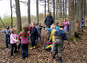 Auf eine spielerische Weise wurden wichtige Zusammenhänge der Natur vermittelt, das Gemeinschaftsgefühl und auch das eigene Selbstwertgefühl gestärkt. So wurden die Kinder auch schon mal zu Bienen und die Erzieherinnen zu Tausendfüssern. Spannend, was sie dabei alles gelernt haben. Zum Beispiel, dass Bienen tanzen um den Artgenossen mitzuteilen, wo Blüten sind, oder dass ein Baum niemals dem anderen gleicht. Auch welche fantastischen Kräfte eine Spinne haben muss, die eine Fliege, die doppelt so gross ist, wie sie selbst, an einem Faden transportiert. Dies konnte sogleich ausprobiert werden, wobei die Kinder auch feststellten, wie stark man in der Gruppe ist und wie schön es ist, wenn man sich aufeinander verlassen kann.
