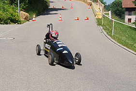 Brunnadern. Ein leises Zischen, ein leichtes Quitschen der Reifen um die letzten Pylonen und schon donnerten die flachen Rennwagen über die Ziellinie. Viel Geschicklichkeit und Mut war gefragt, wenn man hier Spitzenzeiten erreichen wollte. Für die 400 Meter lange und 40 Höhenmeter umfassenden Strecke brauchten die besten Fahrerinnen und Fahrer etwas mehr als eine halbe Minute. Und stand der Spass hier eindeutig im Vordergrund, versuchten die Rennteilnehmer trotzdem alles für ein gutes Ergebnis. Immerhin zählen die Läufe beim Neckertaler Cup auch für die Schweizer Meisterschaft. Das OK möchte mit diesen Event vor allem den Nachwuchs begeistern. «Es wäre sehr schön, wenn es noch mehr lokale Fahrer geben würde» erklärte OK-Präsident Willi Signer, einst selbst begeisterter Seifenkistenfahrer. Die Idee sei eigentlich, dass die Kinder als Nachwuchsfahrer mit ihren Vätern im Winter die tollen Kisten konstruieren und bauen, die sie dann im Sommer auf die Strecke bringen.