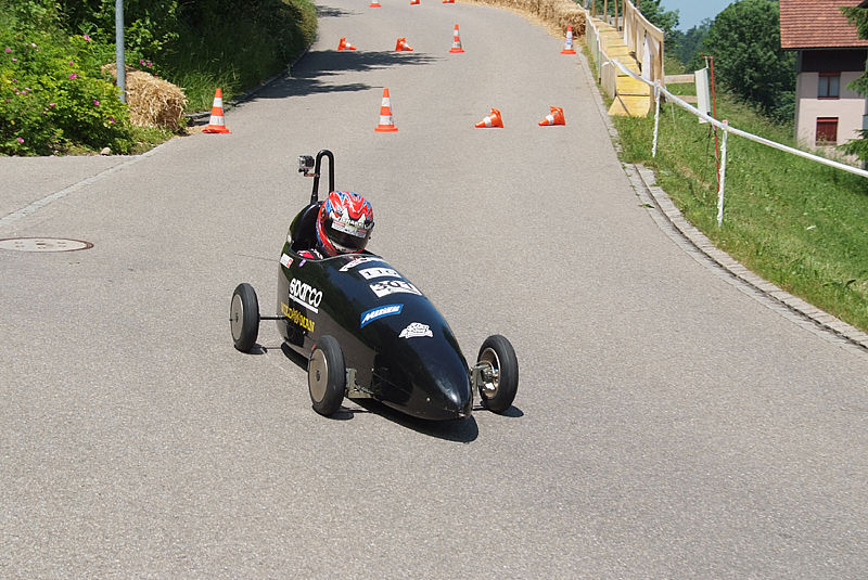 Der Cup bietet aber auch jungen Interessierten die Möglichkeit, sich eine Seifenkiste vor Ort auszuleihen und spontan am Rennen teilzunehmen. So auch der begeisterte Nachwuchsrennfahrer Luca Kothleitner aus Brunnadern. Der 13jährige machte das erste Mal bei so einem Rennen mit. «Ich bin aber im Vorfeld schon einige Male gefahren, aber noch nie bei einem offiziellen Rennen», erklärte er. Den Zugang und die Begeisterung hat er wahrscheinlich von seinem Onkel Elmar Weidele, welcher im OK des Seifenkisten-Cup aktiv ist. «Es gibt einem einen richtigen Adrenalinkick, wenn man so schnell unterwegs ist», erzählte Luca Kothleitner. Neben den Mut sich den Berg hinunterzustürzen, verlange diese Strecke aber auch ihren Respekt. Das Seifenkistenfieber hat den jungen Brunnadner jedenfalls gepackt. «Seit ungefähr fünf Wochen baue ich an einer eigenen Seifenkiste», erzählte er stolz. Die Karosserie sei schon fertig. Der Hobbyrennfahrer schwört dabei auf eine geschlossene Bauform und weiss, dass Länge läuft. Auf jeden Fall soll sein Fahrzeug wieder ein BMW werden, so einen fuhr er schon als Leihwagen beim Rennen in Brunnadern. Oder doch lieber einen Ferrari? Seine Wunschlackierung sei ja schliesslich Rot-Metallic. Luca hofft, dass er seine eigene Rennmaschine schon beim nächsten Renntermin in St.Peterszell einsetzen kann und dass diese natürlich richtig schnell sein wird.