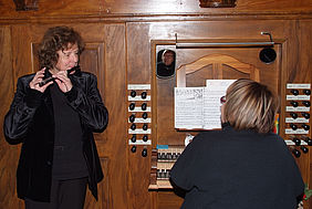 Zuvor waren die beiden Frauen an der Toggenburger Hausorgel in der Webstube Bühl zu hören. Doch brachte Ursula Hauser das mittlerweile fast berühmte Instrument nicht einfach in gewohnter Form zum Klingen, sondern kombinierte ihre eigenen Arrangements im Zusammenspiel mit Piccolo und Flöte von Ursula Bosshardt. «Da die historisch äusserst interessante Hausorgel besonders bei den hohen Registern ein eingeschränktes Instrument ist, haben wir eigene Arrangements zusammen mit der Flöte entwickelt», erklärt Ursula Hauser. In Ursula Bosshardt, mit der sie seit 25 Jahren gemeinsam musiziert, hat die experimentierfreudige Organistin eine ebenbürtige Partnerin gefunden. Und dies, obgleich die beiden Frauen einen so unterschiedlichen Hintergrund haben: Während Ursula Hauser im Gasthaus Kreuz in Hütten aufwuchs und hier manche Nacht in der Ländlerkapelle ihres Vaters Tanzmusik spielte, wuchs die Stadtzürcherin Ursula Bosshardt in einem rein klassischen Umfeld auf. «Als Kind bin ich ausgerissen und einer Musikgesellschaft hinterhergelaufen. Das hat mich magisch angezogen», erzählt sie lachend.