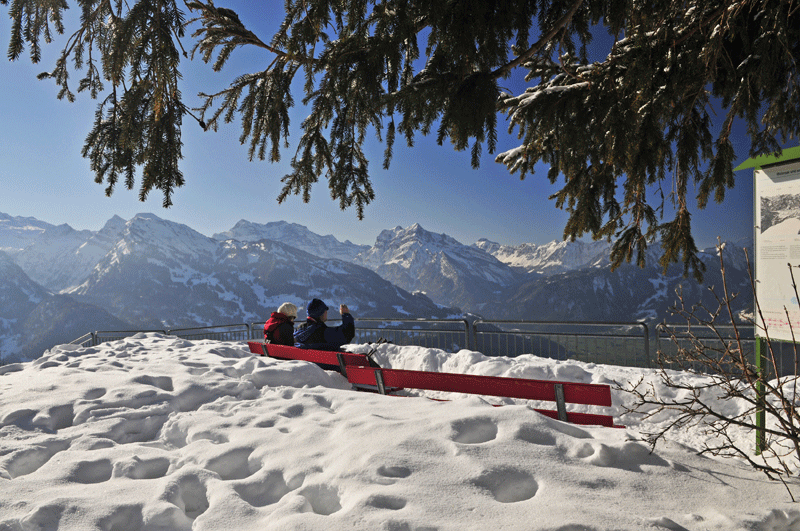 Einen fantastischen Ausblick bietet auch die Route zur Hinteren Höhi, die im Winter als „sonnigster Weg der Region" bezeichnet wird. Die Tour lässt sich von der Bergstation der Sesselbahn Mattstock beginnen und dauert von hier aus knapp eineinhalb Stunden. Der Weg führt gen Strichboden vorbei an der Älplibar zum Plateau Hinter Höhi. Wer die Wanderung bereits im Dorf anfangen und dem ruhigen Strässchen folgen will, muss rund dreieinhalb Stunden einplanen und wird dabei eine Höhendifferenz von 500m zurücklegen.